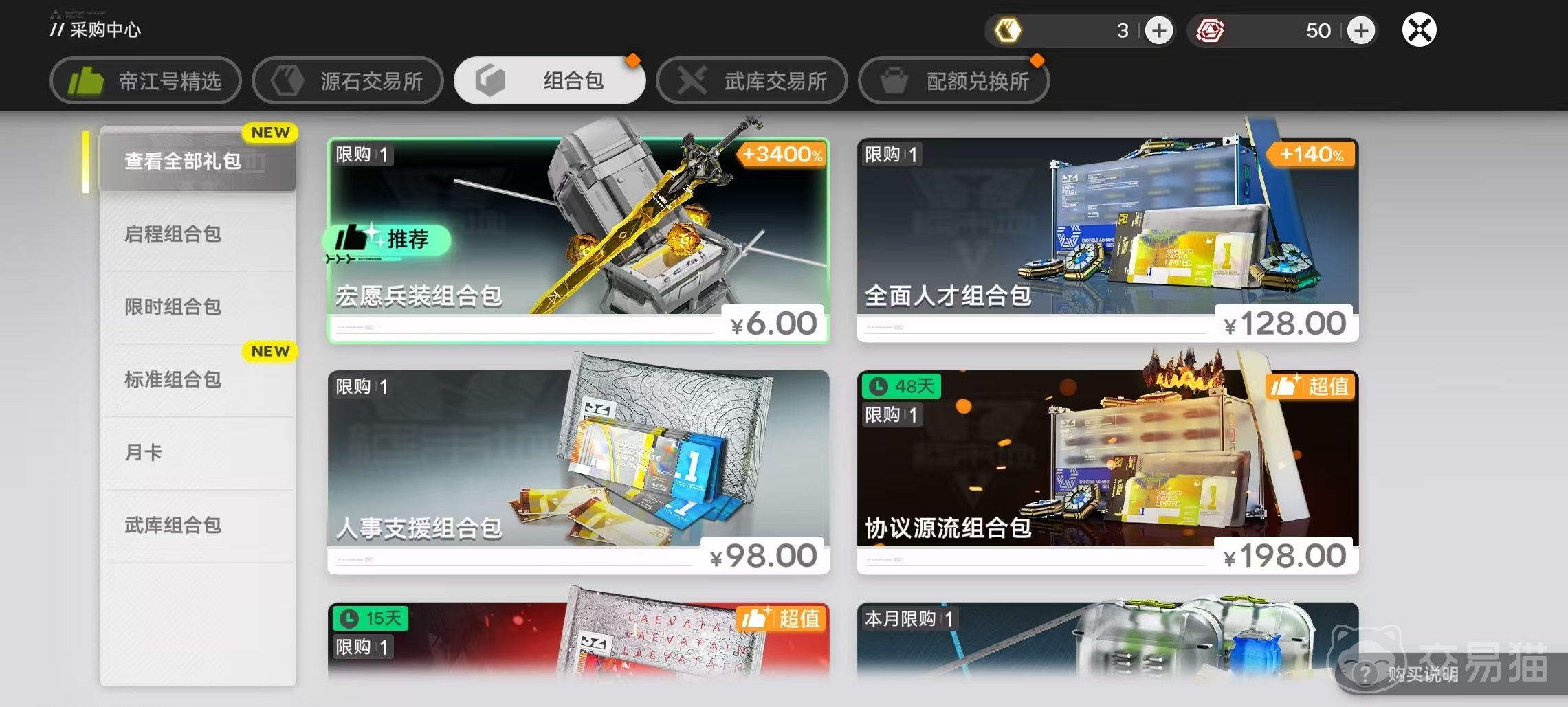 采购中心中的组合包类商品,属于中长期战力跃升的关键投入。例如宏愿兵装组合包、全面人才组合包(售价128元)、人事支援组合包(售价98元)等,虽单次支出较高,但所提供资源覆盖角色成长、装备强化、队伍配置等多个维度,能显著缩短前期发育周期,降低后续重复投入需求。
