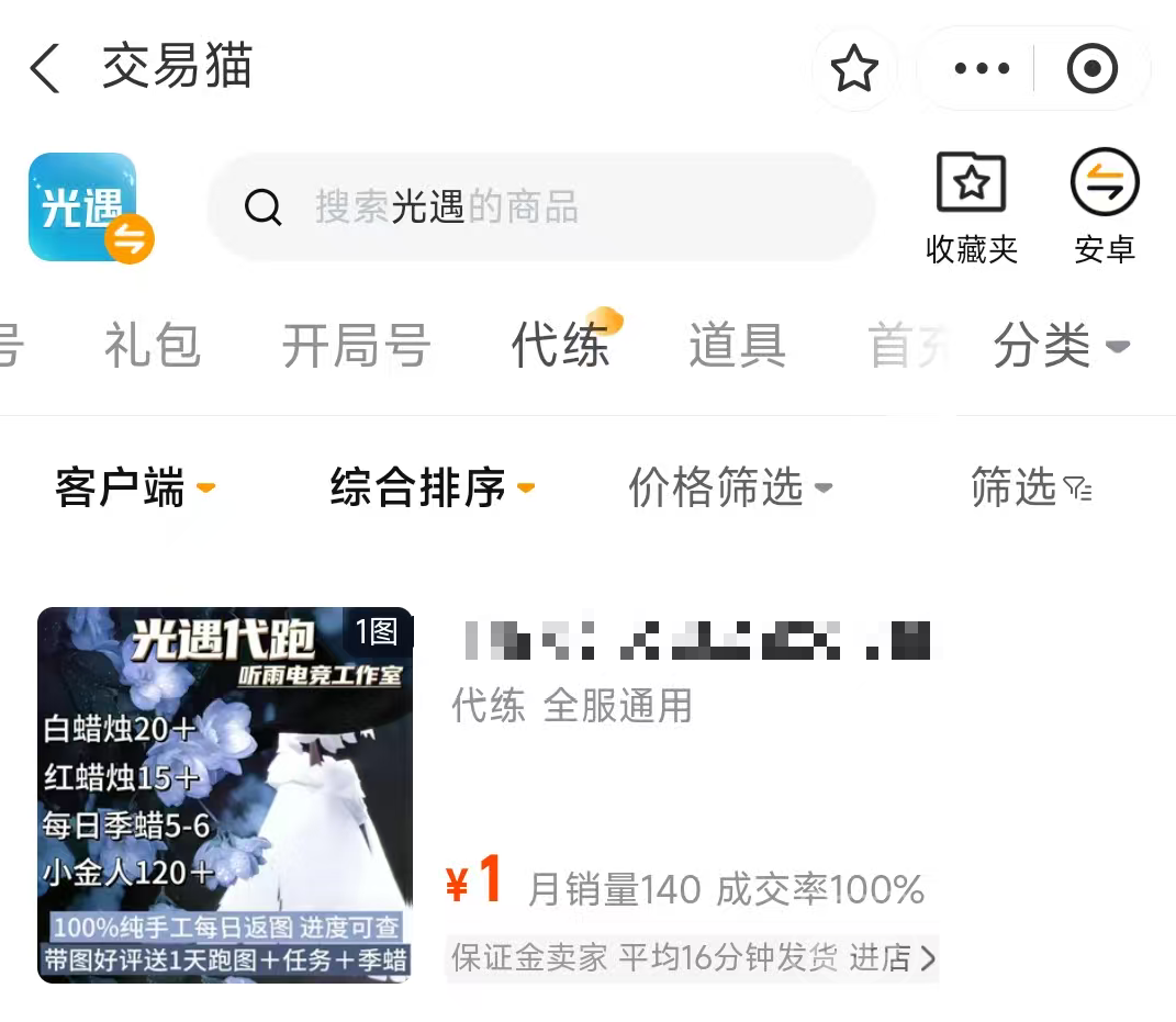目前这就是光遇白鸟号多少钱的全部信息了,白鸟号的价格一般会根据账号的属性不断变动,想要购买靠谱账号还得是这样的资深平台才行哦。
