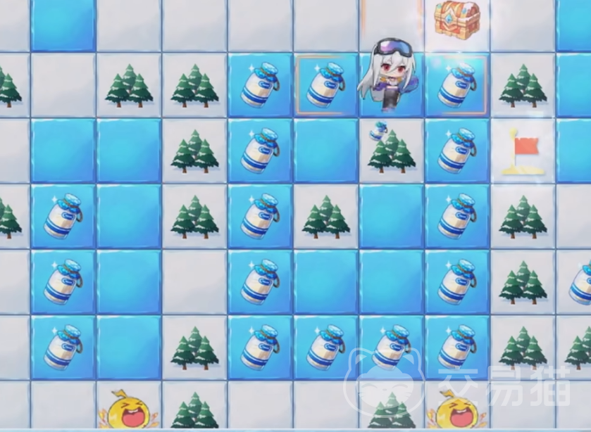 本关结构呈回环式设计,共分三段核心动线。第一阶段:右移7步,在宝箱前一格停驻,随后下→右→左→下→右→上→右→下,绕过首只史莱姆;第二阶段:继续下→右→下→左→下→下→右→上→左,抵达左侧钥匙点并拾取;第三阶段:返回起点后不重置,右移直抵宝箱开启,再右移一格后下移到底,途中驱散右侧史莱姆以打通通路;随后下移一格→左移到底→上移→左移→上移,沿途收集全部牛奶道具,全程规避史莱姆;最后从右侧迂回下行,左移一格避开史莱姆,下行开启最终宝箱。若需达成高效通关,可在重置后执行精简路径:右移至宝箱前一格→下→右→下→驱散史莱姆→沿右侧行进到底即通关。