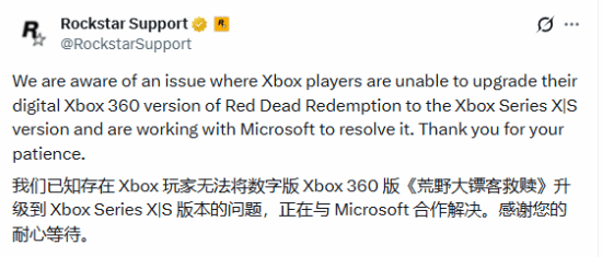 R星官方已承诺会修复Xbox端的升级问题,并呼吁玩家保持耐心。