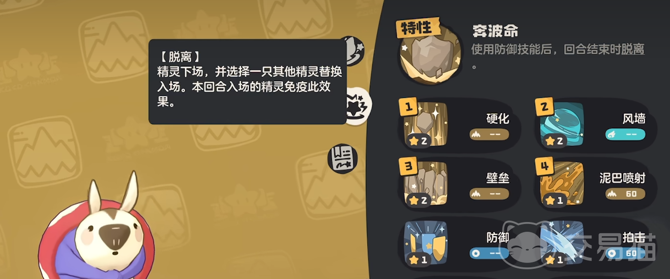 奔波鼠在阵容中承担战术衔接职能,其特性可在成功发动防御类技能时,使自身免疫下一次攻击类技能效果。这意味着当敌方使用倾泻等清除类技能命中其防御动作时,无法正常消除我方已叠加的毒印记,从而维持中毒压制链的完整性。因此,为其配备风墙技能是保障其功能实现的关键操作,释放防御技后即可及时换下。