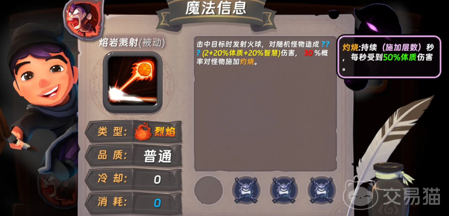 雷电横劈命中目标时,会向正前方扇形区域释放一道雷电,同时打击多个敌人;熔岩溅射则在击中目标后生成一枚火球,随机飞向一名敌方单位并造成伤害,且有30%概率施加灼烧效果,触发持续性每秒伤害。
