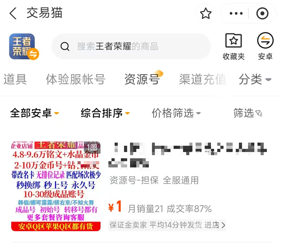 王者荣耀在初期没有铭文和英雄的情况下,玩起来还是很痛苦的,但是部分玩家就不想要收集的流程,就想要购买一个资源号,这样就可以直接开始打段位了,而是有资源号售卖的,而且定价方面都比较便宜,基本上包含各种类型的铭文,可供玩家们自由选择。