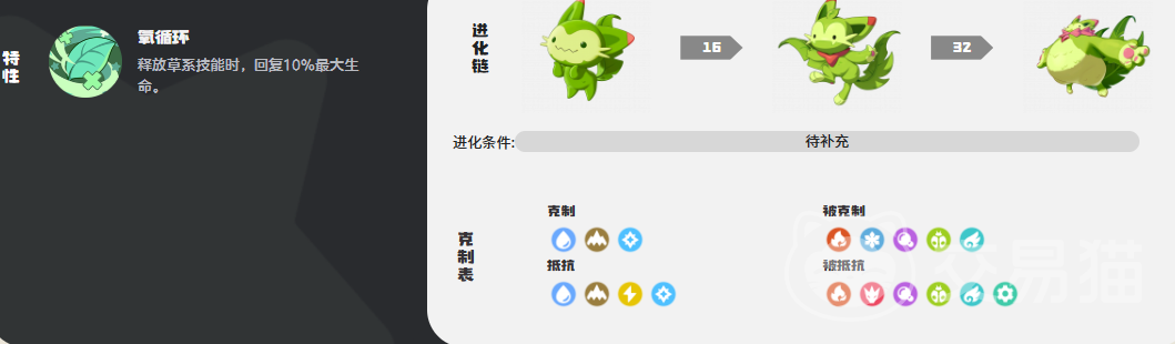 魔力猫的核心特性为“氧循环”,触发后,每使用一次草系技能即可恢复自身10%最大生命值。这一机制显著强化了其持续作战能力,也印证了它并非传统意义上的高爆发输出手,而更适合作为队伍中的功能型辅助。在属性克制关系上,它对水系与土系精灵具有天然优势。技能搭配方面,“筛管奔流”是前期关键输出技——当自身生命处于满值状态时,该技能可获得60点固定威力加成,使魔力猫在保证生存的同时兼顾压制力,兼顾输出与续航双重定位。