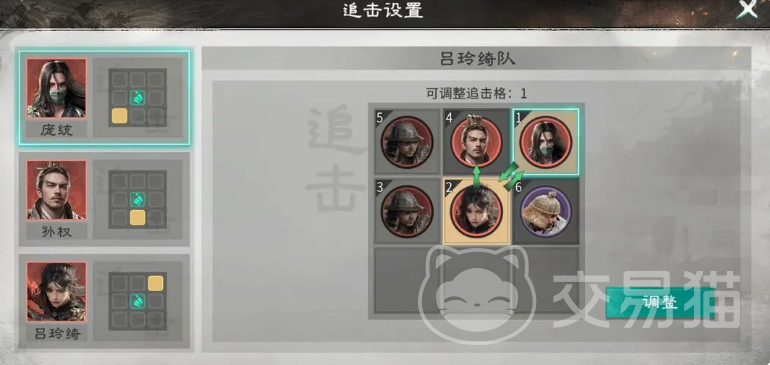该阵容以“制衡—连环—锁定”为逻辑闭环:孙权开局施加【制衡之道】状态,限制敌方武力成长并形成数值差;此差值可直接触发庞统【连环计】,使敌方单位陷入连锁反应;在此基础上,吕玲绮通过【刃映碎光】锁定当前武力最高目标进行精准打击,实现战术级定点清除。站位设计上,吕玲绮置于前排主攻位,庞统紧邻其后踩踏追击格子以提升触发频率,孙权则居中不占追击格,确保自身天赋释放稳定性与全队追击总次数最大化。兵种配置推荐双穿杨军,既强化吕玲绮前期伤害补足,又保障孙权前中期承伤与控场能力。