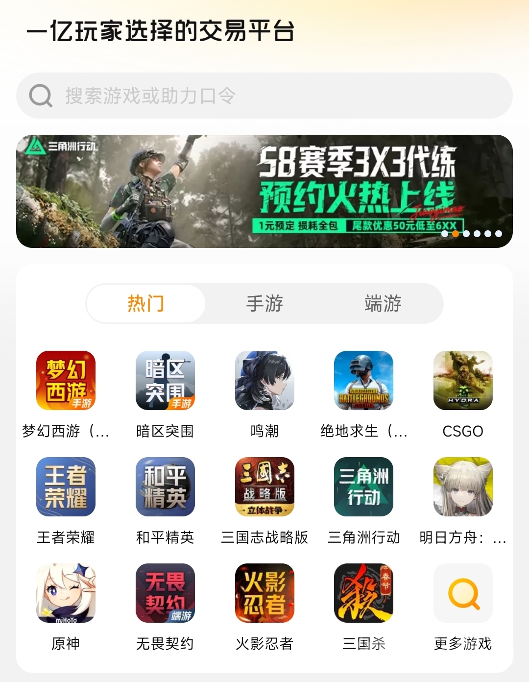 扫码下载APP 下载 点击下载APP安卓用户的小伙伴们直接点击即可下载app,苹果用户的操作更为简单直接打开自带浏览器直接访问官网就能进行账号的交易。梦幻西游作为一个老牌游戏,在上可以交易的内容不止金币道具、精品号、高级道具、自抽号等多个内容,总会有玩家需求的内容。一亿用户选择的交易平台,基本上达成了游戏全覆盖,6000 的游戏,100万 的在架游戏账号类目,累计已服务了7000万 的用户,这个成绩在众多的游戏交易软件中已经算是非常不错了!