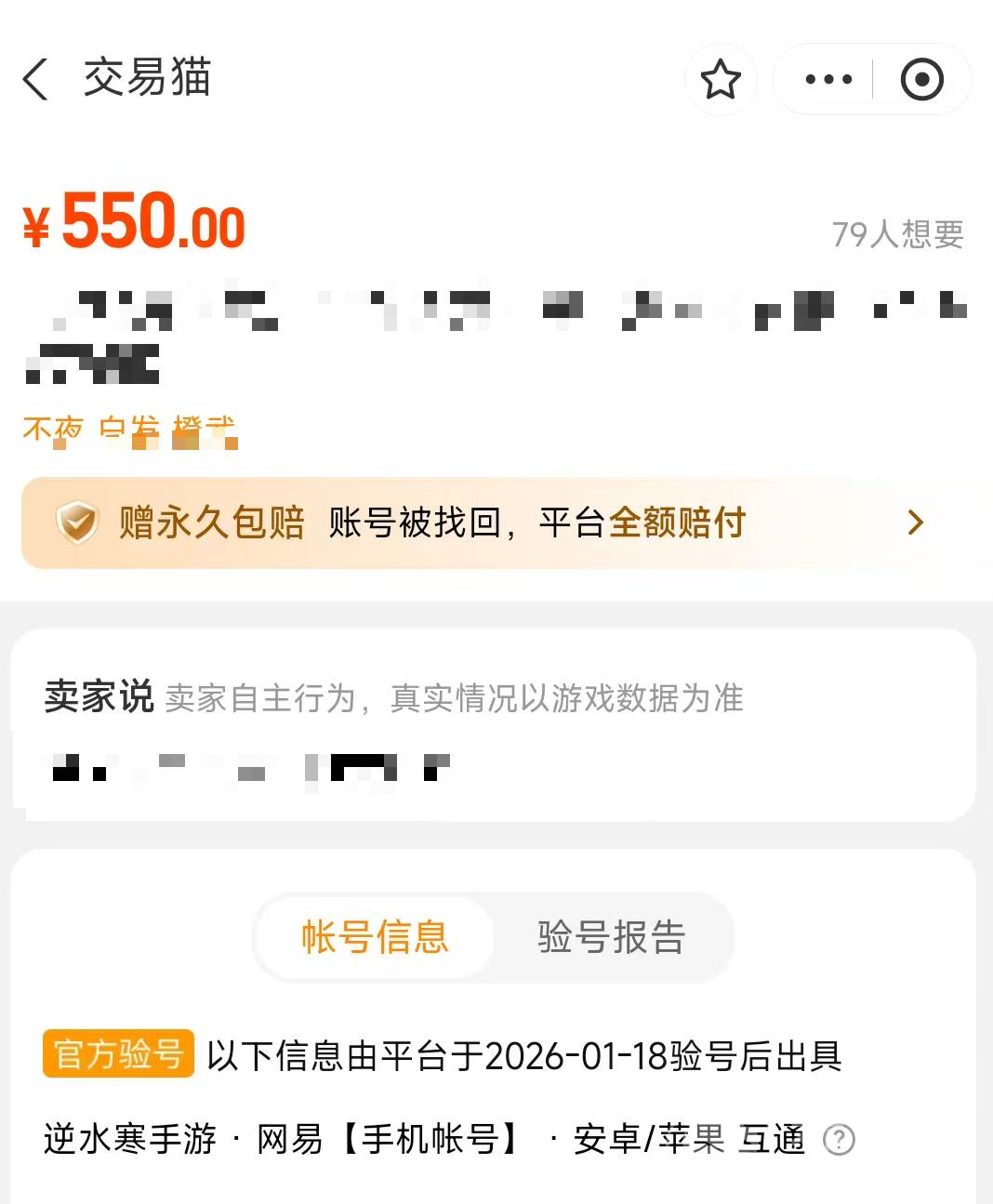 扫码下载APP 下载 点击下载APP逆水寒游戏内的服装还是比较多的,而且有部分的时装售价非常贵,很多玩家就会怕这些账号存在虚假宣传的情况,而这种情况在平台是不会出现的,因为平台的多数账号都经过官方验号,同时验号的时候还会将游戏账号内的数据进行截图,这样确保信息是公开透明的,同时还有一个安心购的服务,如果后续账号出现任何问题,官方都会进行相应赔付的,并且平台配备千人专业服务团队,凭借充足人力保障服务极速响应,无需漫长等待。订单发货环节高效顺畅,从确认到出库平均0.5小时内即可完成,售后各类问题也能在48小时内妥善处置完毕,全程专业省心,想要使用的话推荐安卓用户通过上方按钮下载,而ios用户则可以直接到官网使用哦。