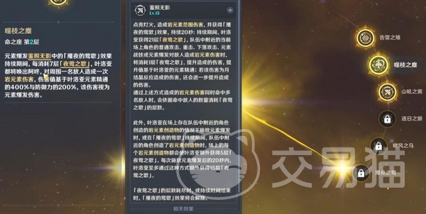叶洛亚的核心设计聚焦于辅助增益与反应协同,不承担站场输出职责。她的元素爆发不仅造成范围岩伤,更会为全队施加「夜莺之歌」状态——该效果可通过队友不同类型的攻击(如重击、元素战技、元素爆发)进行层数消耗,并基于角色自身元素精通数值转化为额外伤害加成。