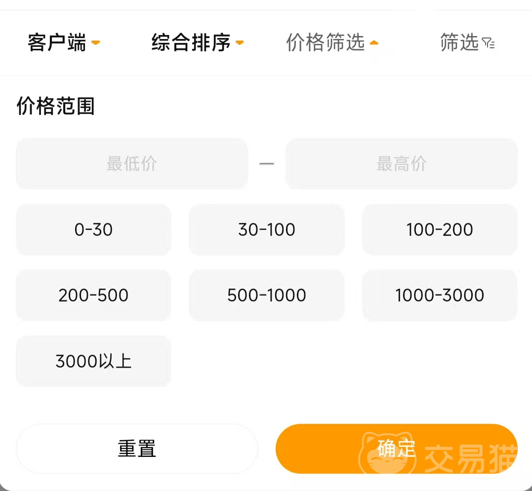 有部分玩家在购买账号的时候会很担忧价格问题,毕竟自己的预算是非常有限的,但是多数账号都超过了自己的预算,那么可以使用的价格筛选功能,筛选以后价格就不会出现超预算的情况,这样玩家们挑选的时候就不会有特别大的压力。