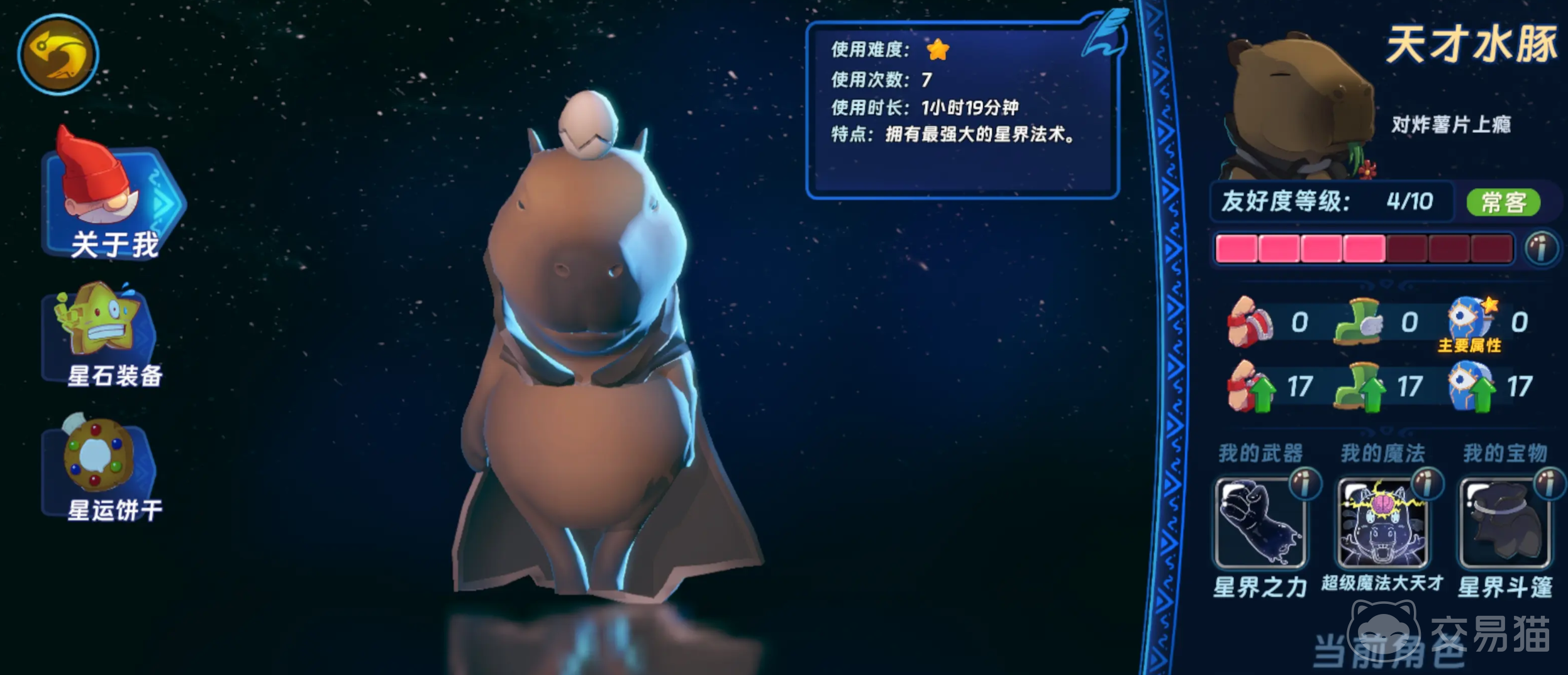 汉克旅店中备受玩家热议的神秘英雄,实为广受喜爱的卡皮巴拉——官方设定名称“天才水豚”。该角色定位为T0级核心输出,在当前版本中获取门槛较低,但若想充分发挥其战斗潜力,需结合机制特点进行科学培养。尤其在深渊天梯等高难度PVE与PVP场景中,合理养成策略将显著提升通关效率与胜率。