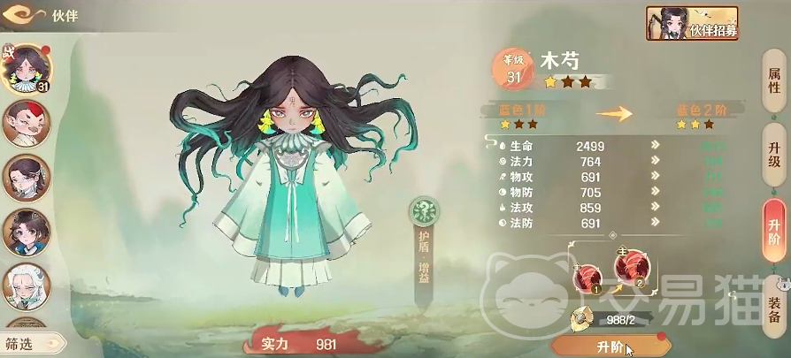 木勺——牡丹花妖化身,定位为成长型护盾辅助。其技能随战斗进程逐步强化,在前中期提供基础防护,至中后期可生成高额持续护盾,显著提升全队生存容错率。角色形象延续传统花妖气质,冷艳端方,技能逻辑强调“越战越稳”,是高难度副本与长线推图场景中的关键支援人选。