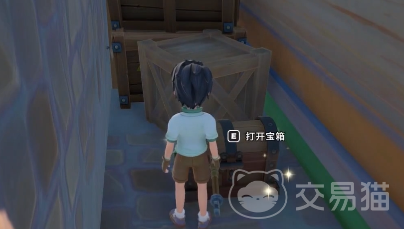 第二只宝箱设置于驿站建筑外部。从正门走出后,正前方即为一处开放式前廊式阳台,地面铺设浅色石板,边缘配有木质栏杆。宝箱直接置于阳台**偏左位置,未做遮蔽处理,视野开阔时一目了然。开启后稳定获取50枚金币。该数额在游戏初期具备实用价值,足以兑换基础种子、工具升级材料或少量装饰道具。