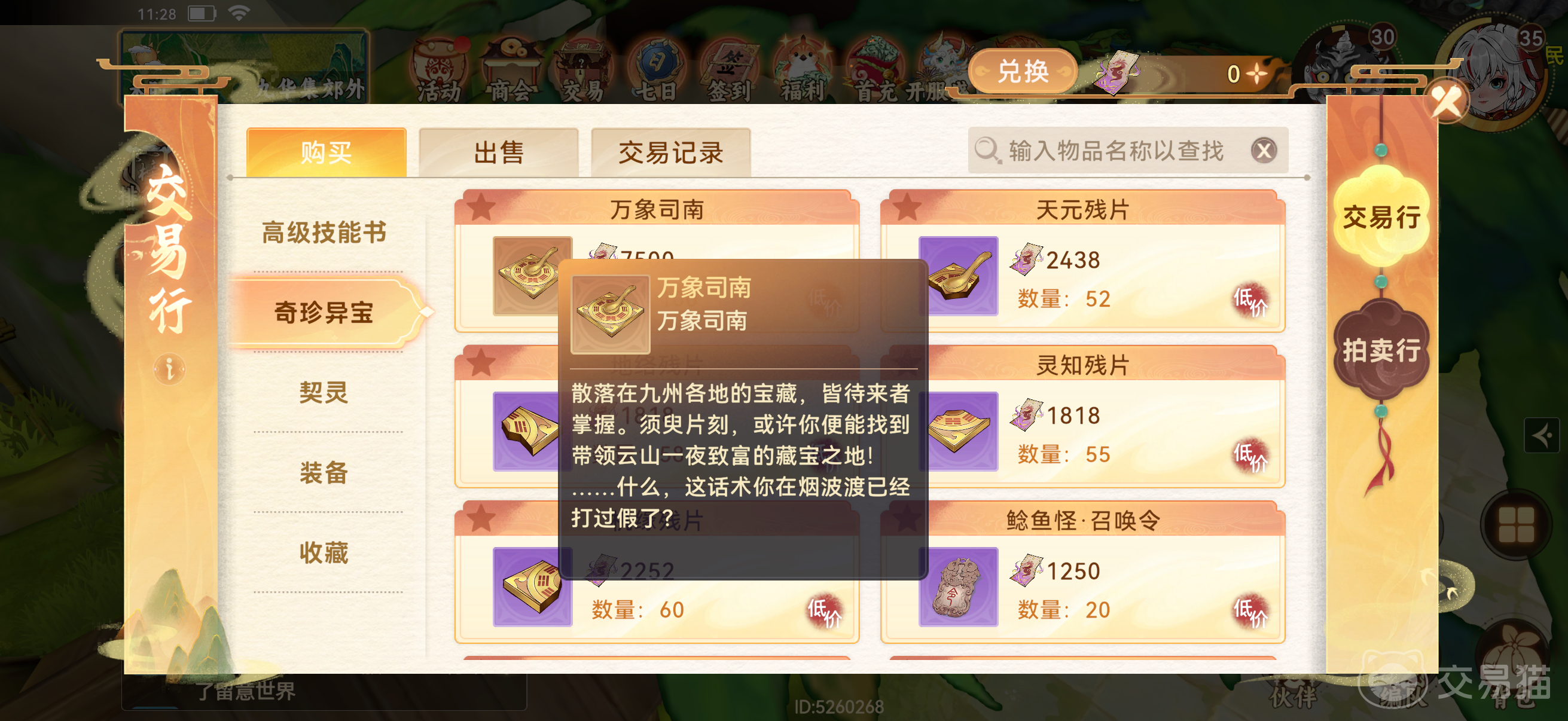 地图中存在高级宝箱,其开启需使用进阶道具——万象司南。该物品归类为“奇珍异宝”,不可通过常规途径获取,仅可通过消耗“万宝妖钞”兑换。而万宝妖钞需通过游戏内充值行为按比例转化获得,属于付费限定资源。