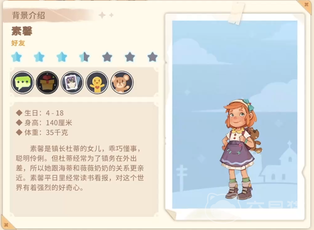 《沙石镇时光》作为一款广受玩家喜爱的模拟经营类游戏,凭借其细腻的世界观、丰富的NPC互动与沉浸式的建造体验,持续吸引着大量新老玩家。其中,镇长杜蒂的女儿素馨,是玩家早期在沙石镇中心区域接触的关键角色之一——通常走出镇长办公室后即可遇见。她聪慧温和,热爱阅读,对自然与人文知识抱有强烈兴趣;因与母亲相处时间有限,反而与海蒂、薇薇奶奶关系更为亲密,性格中既有孩童的纯真,也带着超越年龄的沉静气质。