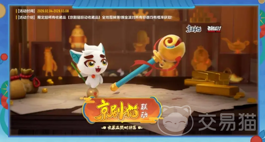 参与方式简单直接:使用普通话清晰说出指定口令,即可领取“京剧猫惊喜宝箱”与“复制宝库钥匙自选包”。开启宝箱后,有机会获得季票勋章等稀有道具。同时,2月4日至3月8日期间,加入“摸金派对”模式,在场景中搜索特定容器,还可随机获取“京剧猫联动收藏品”。