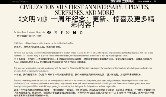 《文明7》近日在其官方推特上发布了新的周年纪念致辞,内容包含了游戏未来的更新规划和发展计划,快来一起看看吧。