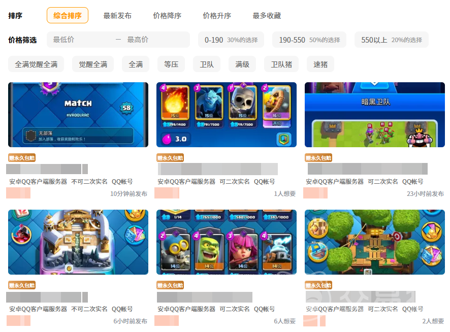 皇室战争账号交易用什么软件?在卡牌对战玩法的游戏作品中,皇室战争必定占一席之地,表现一直都很突出,反反复复吸引人不断入坑和回游。本期小编给大家带来一款最好用的皇室战争交易平台的分享——,能够给小伙伴们提供超多游戏账号资源,而且安全保障系统十分完善。