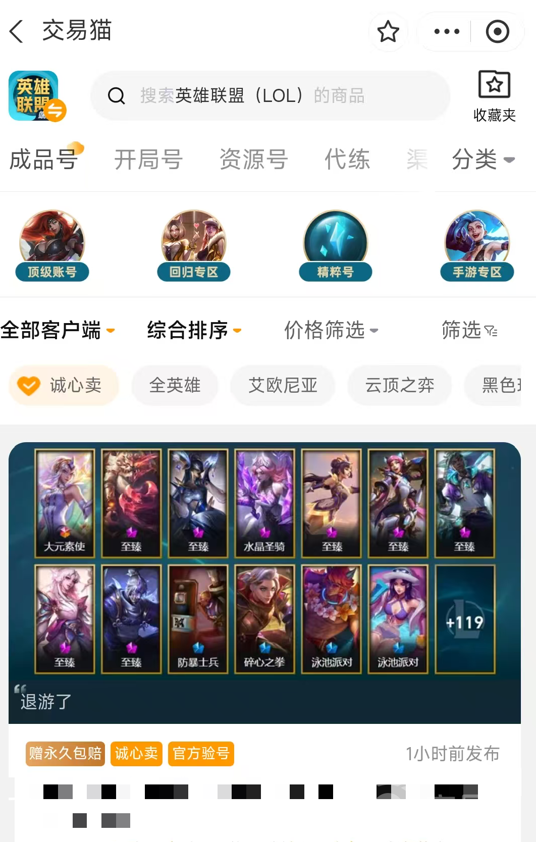 扫码下载APP 下载 点击下载APP英雄联盟账号的价值多数是根据皮肤来决定的,基本上绝版的皮肤定价会越高,如果玩家们不清楚价格的话,可以选择使用的估价功能,该功能可以准确估算出英雄联盟账号的价格,不过前提是需要玩家们提供真实可靠的信息以及渠道服,后续就能通过该价格进行售卖了,而且累计服务超7000万玩家,平台实现6000 游戏全面覆盖,各类在架商品数量突破100万件,其服务业务是处于顶尖水平的,想要使用的话,安卓用户点击上方按钮下载即可,ios用户直接访问官网就能正常使用。