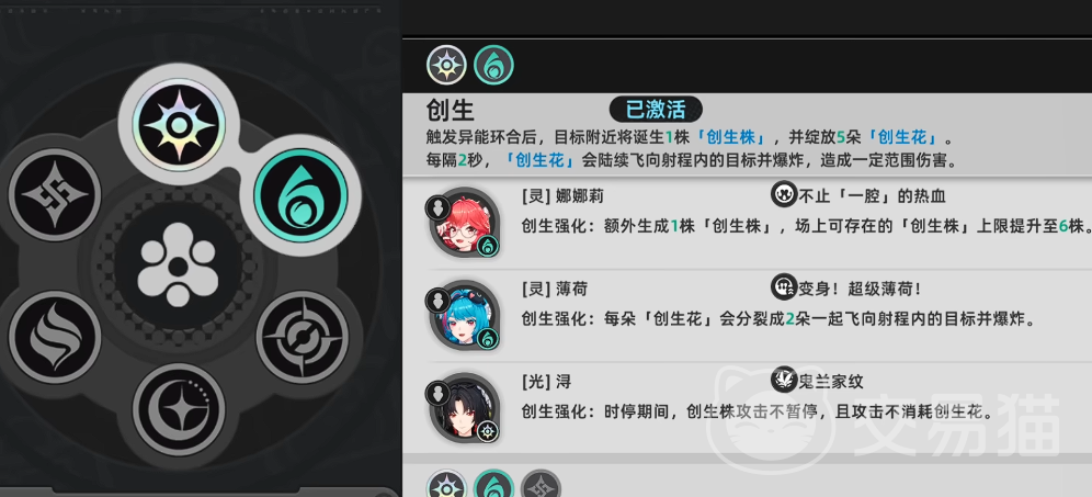 标准创生队推荐配置为:老板娘、薄荷、莉莉娜与主角。四人机制存在明确的协同逻辑——除主角作为基础触发锚点外,其余三名角色均具备对创生花的专属增益效果:老板娘进入时停后,可确保所有创生花技能100%命中;薄荷QTE可全图溅射并提升创生花基础伤害;莉莉娜则在格挡成功后显著增加单次异能环合所生成的创生花数量。该组合不依赖稀有命座或高练度词条,成型门槛低,泛用性强。