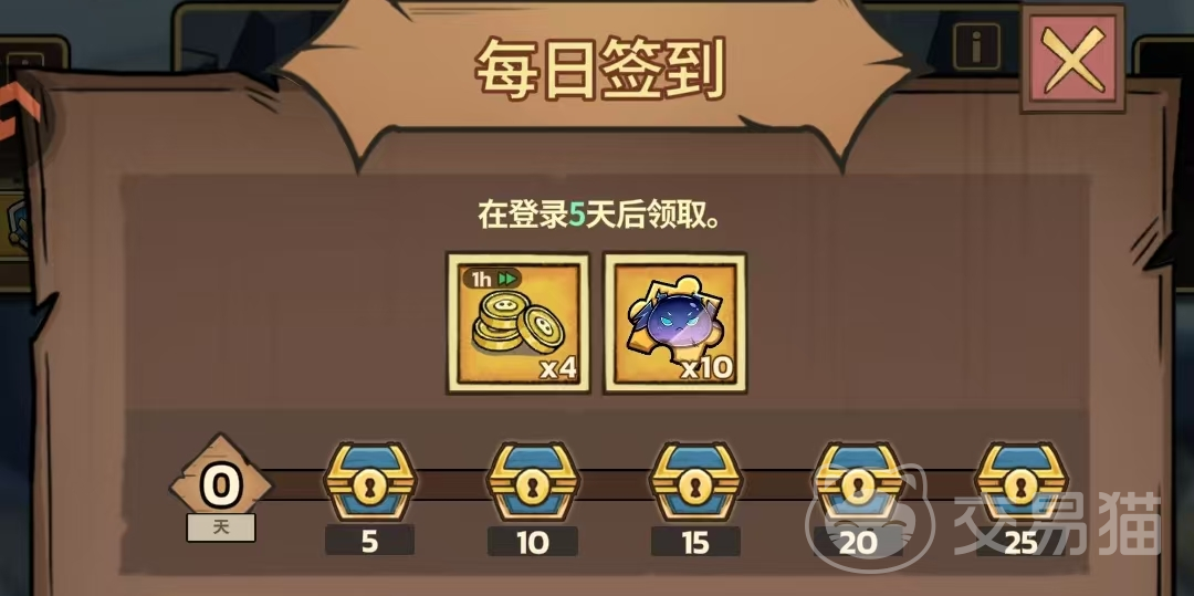 通关第1章第10波后开放,通过每日签到与基础任务获取钥匙、经验水晶及金币等常规资源。