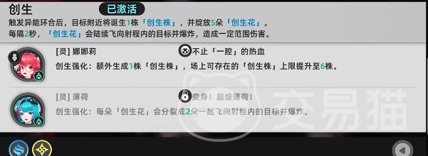 若队伍中同时配置零与薄荷,则坼绽效果将获得三重叠加强化:零的特性使每朵创生花分裂为两朵,直接翻倍攻击次数与覆盖广度;而薄荷则赋予每株创生株额外再生5朵创生花的能力。二者协同下,初始1株×5朵的基础结构可迅速演变为多株×多朵的指数级增长模型,大幅提升单位时间内对敌方的持续压制力。