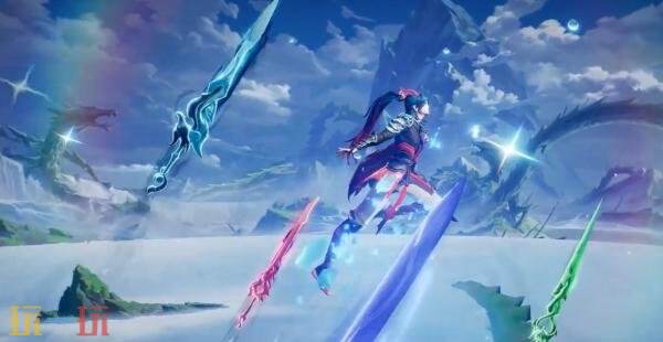 武器设计: 手中执掌四柄召唤长剑,剑身分别蕴含四灵之力,剑格处雕有栩栩如生的龙纹,挥动时光华流转,似有龙吟隐隐。