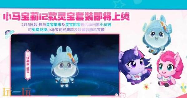 王者荣耀×小马宝莉联动2月5日正式开启,,参与【灵宝集市】及【灵宝挖宝】等活动积累小马钱,可在【小马商店】兑换【小马宝莉“闪闪音韵”元流之子时装】、【小马宝莉经典款灵宝宝箱】、【小马宝莉珍藏款灵宝宝箱】等好礼。