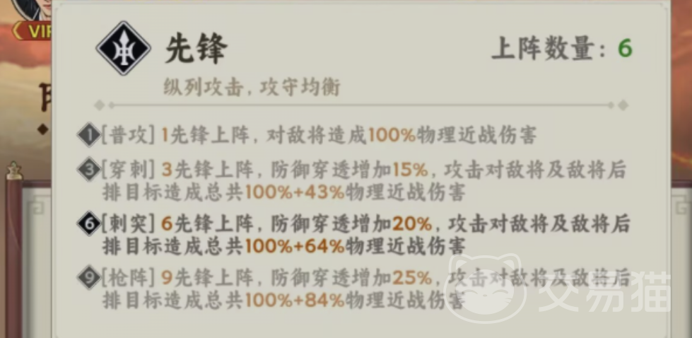 该流派对平民玩家极为友好。所有推荐武将均可通过新手任务奖励、日常副本商店兑换等方式直接获取,无需抽卡或额外付费。主力配置建议选用典韦、姜维、魏延、文丑、关平等具备先锋标签的武将,确保“刺突”羁绊稳定触发。该羁绊能有效应对敌方前后排脱节、前排堆甲、后排脆皮的常见布阵方式,形成战术压制。