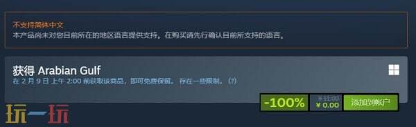 由独立游戏开发者IVDev开发的沙漠主题生存射击游戏《Arabian Gulf》现已在Steam平台开启限时免费领取。本次活动将持续至北京时间2月9日凌晨2点,用户访问商店页面即可一键领取,领取后游戏将永久保留于库中。该作品在Steam国区的原售价为11元。