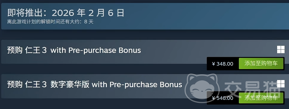 根据Steam当前页面显示,《仁王3》标准版定价为348元,豪华版则为546元。由于游戏处于首发阶段,平台已同步开启限时优惠活动:标准版折后价为283.97元,豪华版折后价为445.54元。建议玩家结合自身需求与预算,理性选择对应版本。