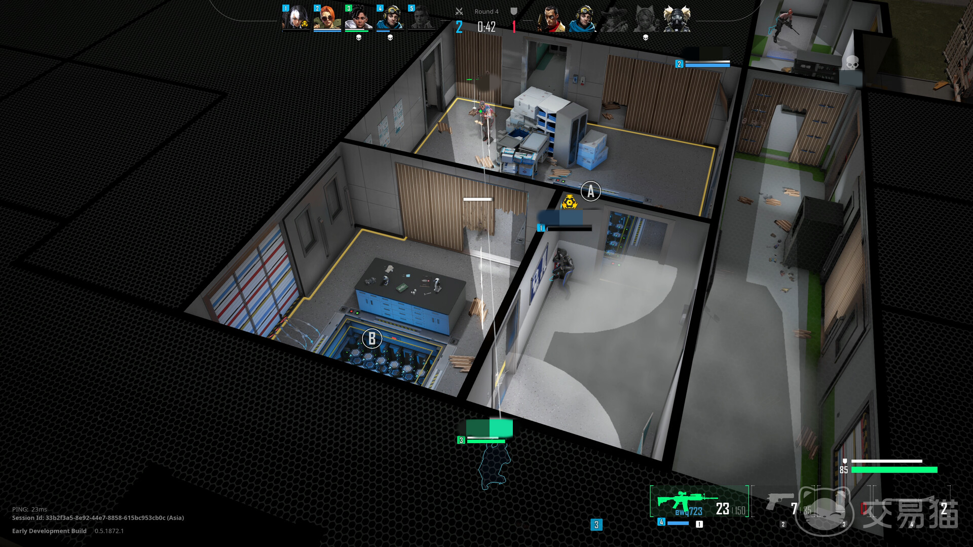 操作层面延续经典战术射击逻辑:WSAD控制角色移动,空格键实现跳跃与翻越,C键下蹲,V键触发近战交互,数字键切换武器,R键执行换弹动作。瞄准系统中,鼠标右键开启精准瞄准,准星转红即表示锁定目标,左键即可射击;按住Ctrl可主动压低枪线,有效应对蹲伏状态下的对手。Q/E键用于轮换投掷物,鼠标中键设定角色专属技能。游戏内置视野共享机制,队友所见画面实时同步至主界面,小地图清晰标注所有己方成员位置,配合语音报点可大幅提升协同效率。