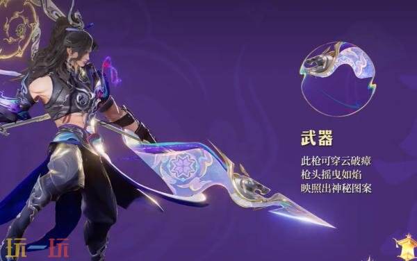 * 武器:枪头以抽象化神骥构成,代表思绪的流线勾勒其间。枪尖如幽火摇曳,映照出神秘图案。