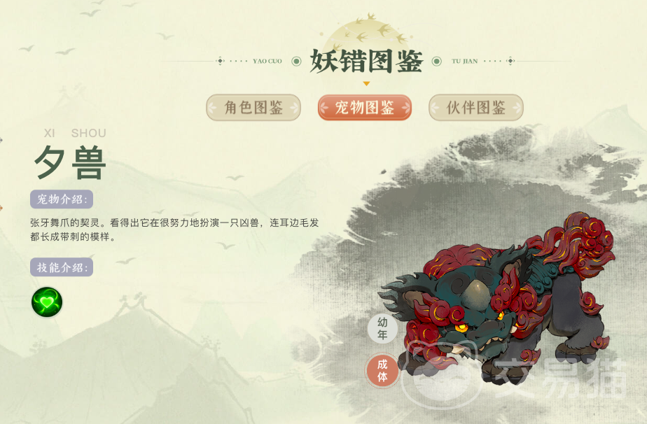 妖错图四脚兽的内容盘点就到此结束了,黑纹虎、麒麟、苍枢、夕兽这四位四脚兽宠物,在技能方面可谓过去特色而且在外观造型上不仅将水墨画风与山海经文化进行高度融合