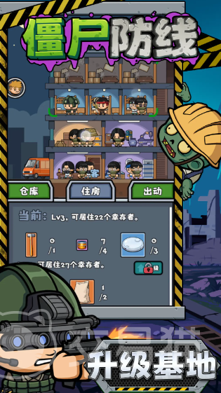 新手友好度突出,基础操作逻辑贴近经典塔防体验,降低入门门槛;深度系统则面向硬核用户:基地升级可提升幸存者容纳上限与物资仓储容量,优化资源配置效率是维系长期防线的关键;无尽模式提供持续挑战空间,每层难度递增并引入随机事件,驱动玩家反复调整阵容构成与装备配比,在实战中验证策略有效性。