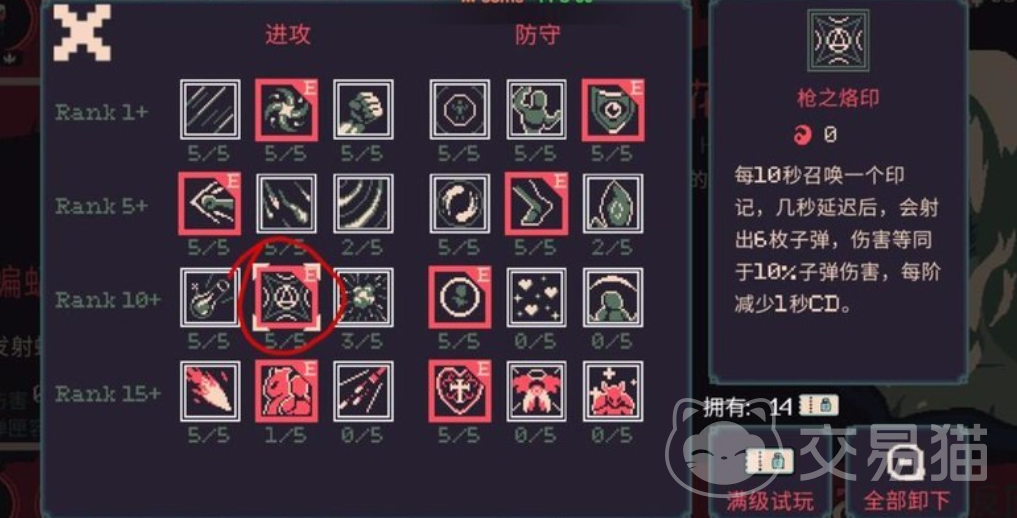 符文配置需围绕“非主动射击”逻辑展开。唯一保留的枪械类符文为“枪之烙印”,其余槽位应集中强化元素效果——优先提升点燃、冰冻等子弹附带状态的触发概率与持续时间。“枪之烙印”本身具备延迟发射机制:每10秒自动生成一枚印记,若未被主动使用,将自动射出6发子弹;其等级越高,冷却时间越短,是支撑全程不点射的核心被动输出来源。