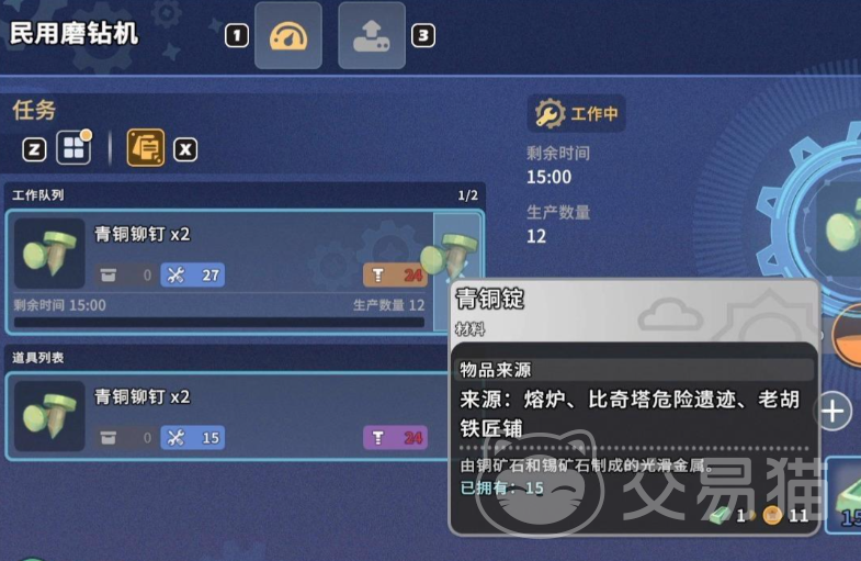 当基础版磨砖机产能无法满足发展需求时,可升级为民用磨砖机。升级材料包含马达、锰钢锭与铜制齿轮,三者均属中后期资源,获取路径涉及多层工艺链(例如锰钢锭需先提炼锰矿再合金化)。建议玩家优先保障主线进度,在资源储备充足后再推进升级。升级完成后,单次产出量提升,且单位时间内的总加工效率显著增强。