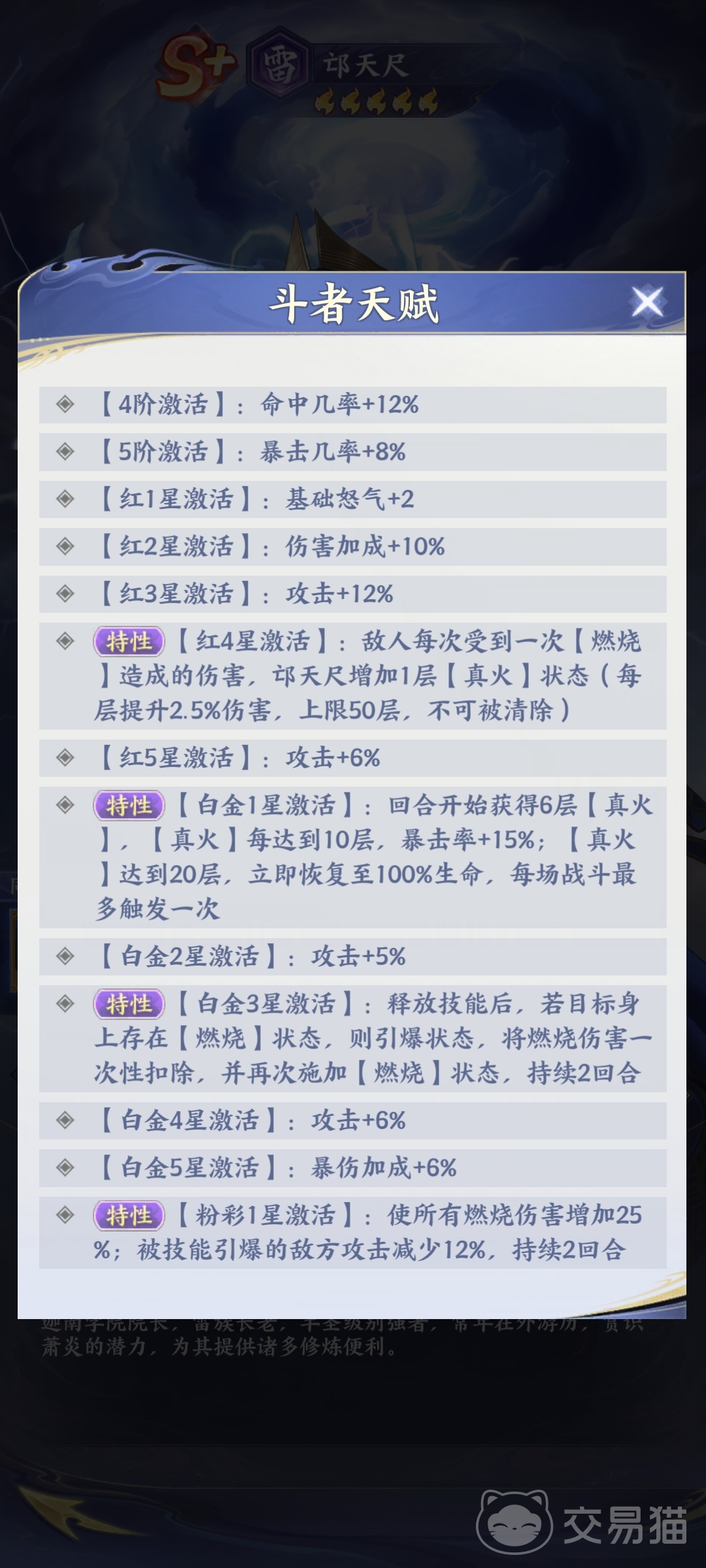 天赋系统是其战力跃升的核心路径:四阶激活后,攻击命中率获得质变保障;五阶解锁后暴击率显著提升,输出稳定性与瞬间爆发力同步增强。每当敌方承受燃烧伤害,邙天尺即叠加1层“真火”效果——该层数直接关联实战表现:达10层时暴击率进一步提高;累积至20层可触发一次全额生命值恢复(每场战斗限1次),大幅提升中后期续航能力。
