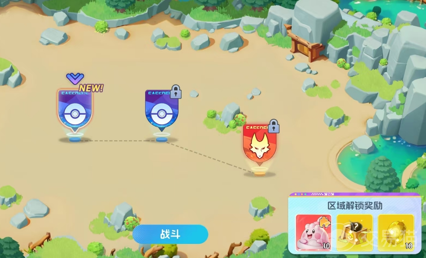 初始状态下,岛屿大部分区域处于锁定状态,需按固定顺序逐层开放。每个新区块的解锁均需满足双重条件:一是通关探险模式中对应的主线关卡;二是完成三场指定的区域解锁战斗。该三场战斗支持分次挑战,失败或中断后进度保留,玩家可待宝可梦战力提升后再继续推进,已通过的战斗不会重置。成功完成后,当前区域将转化为可自由规划的空地,同时后续区域自动进入待解锁状态。