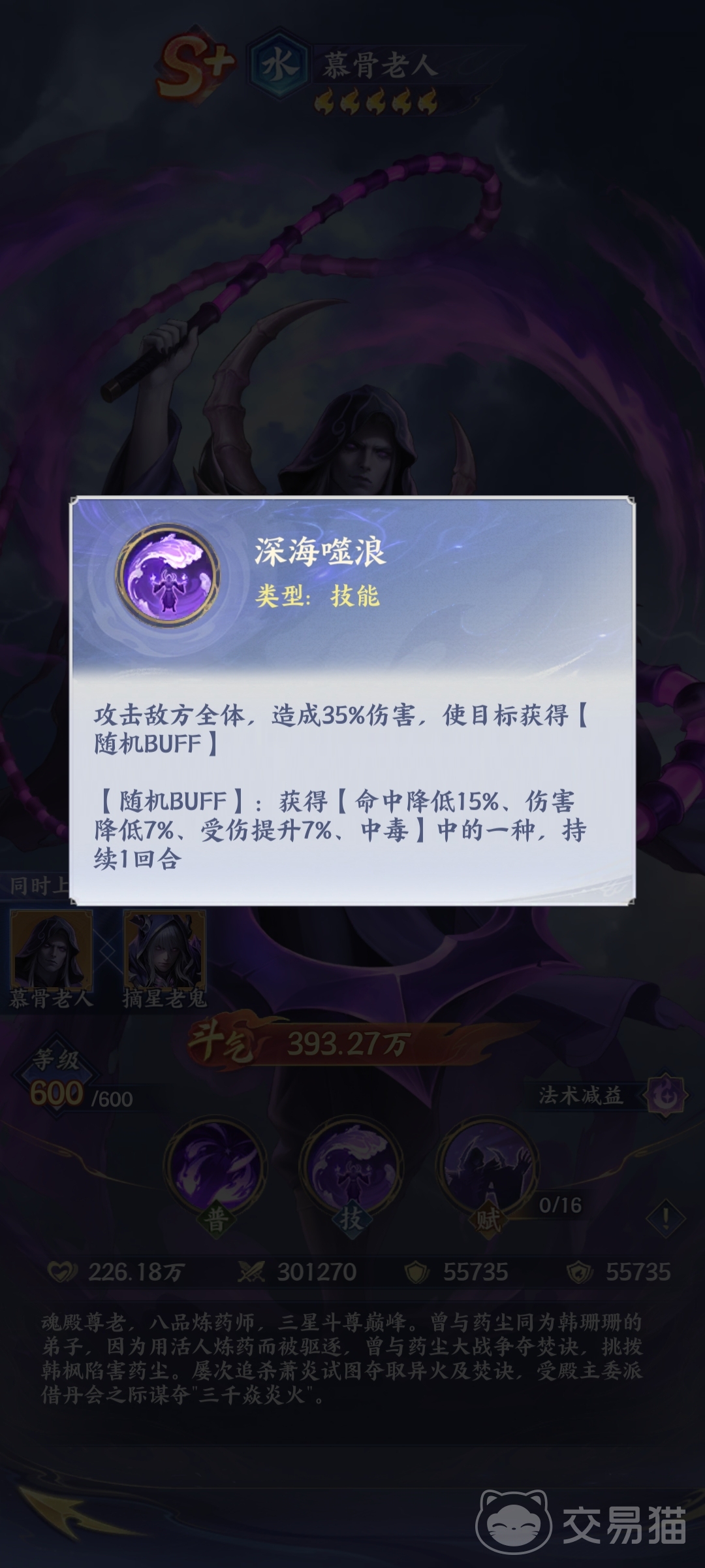 需特别注意的是:慕骨老人的强度高度依赖水系队友协同。若玩家尚未获取美杜莎或海波东等关键水系角色,单独培养慕骨老人将导致控制链断裂、减益覆盖率不足,资源转化率显著下降。因此,建议将其纳入整体水系养成规划中统筹考虑,避免孤立投入。