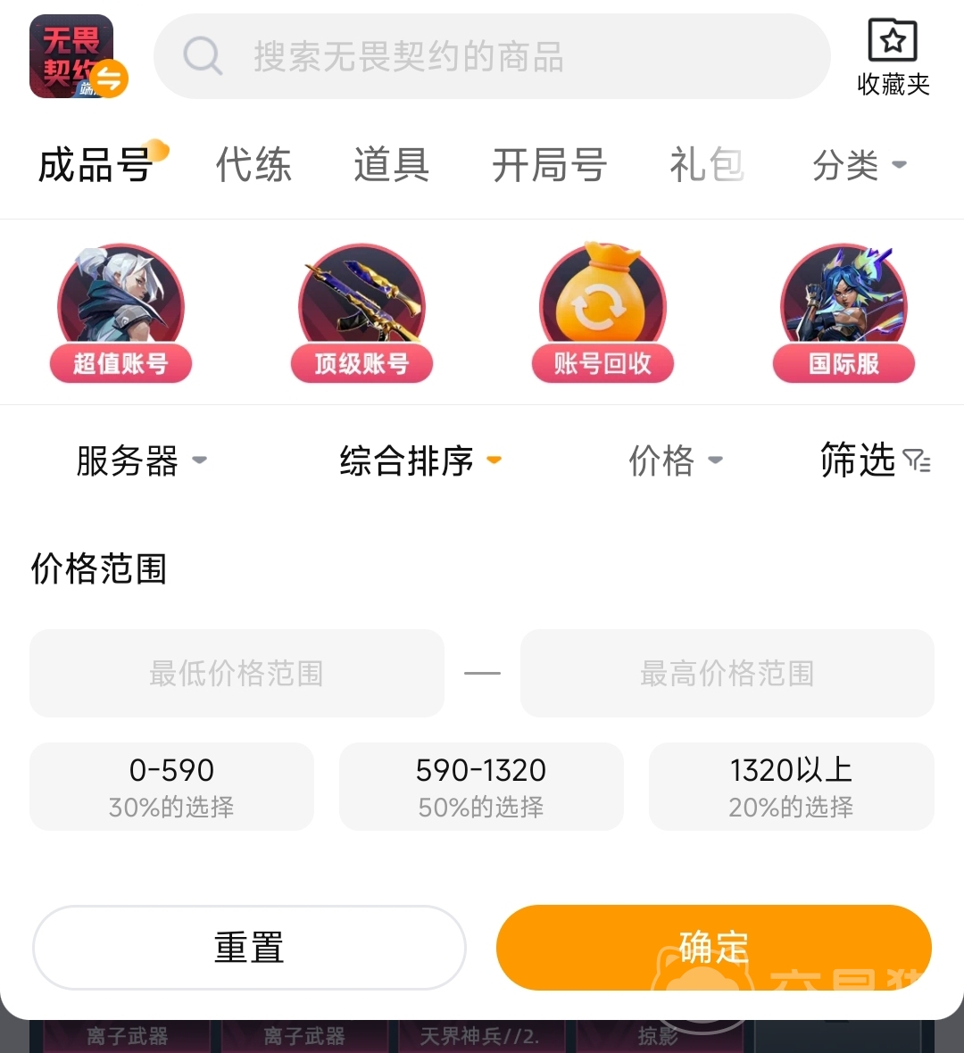 作为一个用户体量非常大的平台,在这个平台上拥有大量的游戏账号,无畏契约作为一款热门游戏,相关的账号内容自然不会少。通过在上搜索这款游戏的价格区间,可以发展账号在600-1300之间的关注度较高,玩家们可以参考下这个价格。