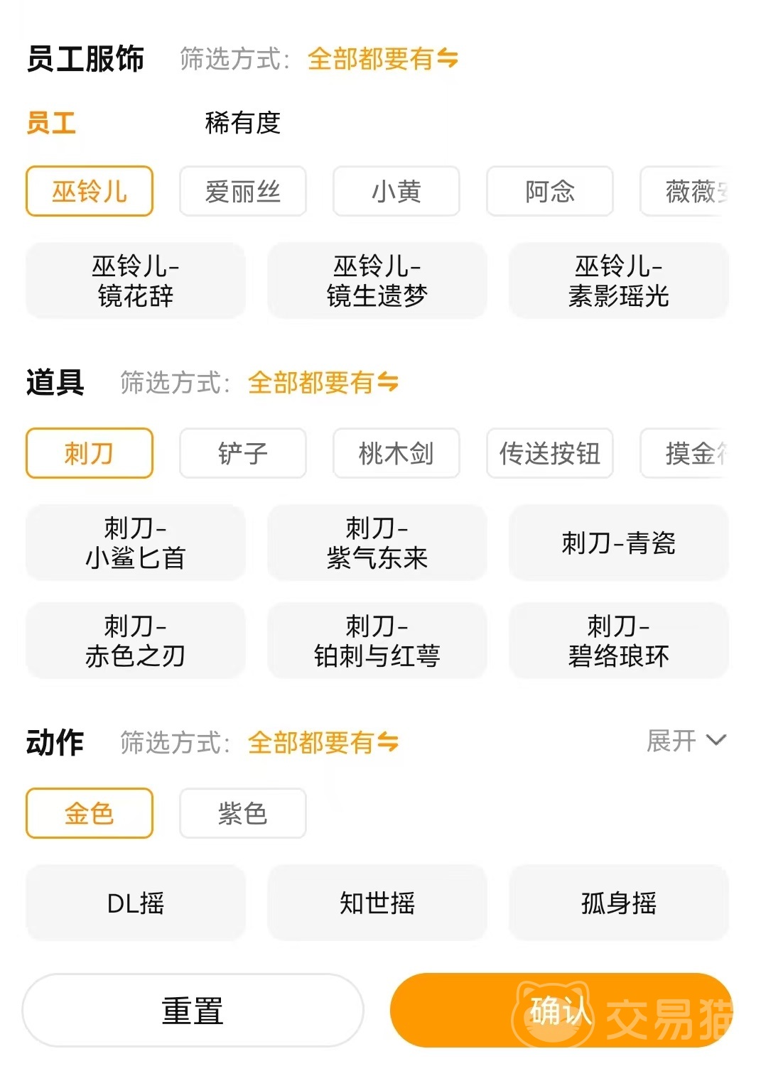 购买的时候也非常方便,在专区中搜索到游戏后,可以看到有多个不同可筛选项,包括里面具有哪些员工服饰,具有哪些道具、动作和饰品等,这些都是账号中最有价值的部分。购买者可以通过点击这些选项,找到最适合自己的商品类型,然后再进行价格方面排序,就能快速锁定最有性价比的那一个。接下来也是平台发货,响应非常快,可顺利拿到自己心仪的号。