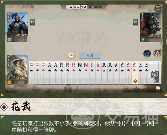 在玩法设计上,《三国:百将牌》摒弃过度复杂的规则嵌套,回归卡牌竞技本源。顺子、炸弹、连对等基础牌型沿用大众熟知的命名逻辑,降低新手理解门槛。同时,在武将技能架构层面实现突破性重构——以关羽为例,其技能卡组由传统四张扩容至五张,每张卡均配备简洁明了的效果说明,确保策略表达清晰、执行反馈直观,兼顾深度与易上手性。