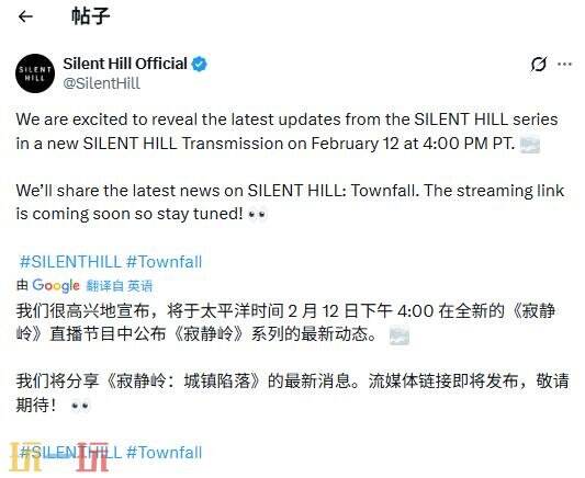 科乐美宣布,将于北京时间2月13日早上八点举办一场“寂静岭直播”,届时将公布《寂静岭:城镇陷落》(Silent Hill: Townfall)的最新信息。可以在YouTube上观看直播。