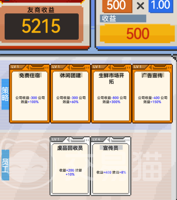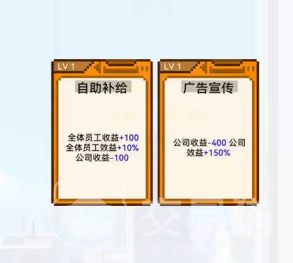 除角色天赋外,游戏内还设计了多类功能型卡牌,涵盖广告投放、自助补给、风险对冲等现实商业场景。多数卡牌具备双向效果——既带来阶段性增益,也可能伴随隐性成本或使用限制。如何权衡利弊、择机部署,构成 gameplay 的核心挑战。