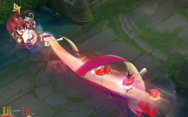 一技能:喜欢苹果制造的惊喜吗?安琪拉抛出的苹果瓣在空中飞舞。当果片汇聚,合拢成完整的闪光苹果。若又在中途分散,果片们将幻化为苹果小矮人落地逃走。
