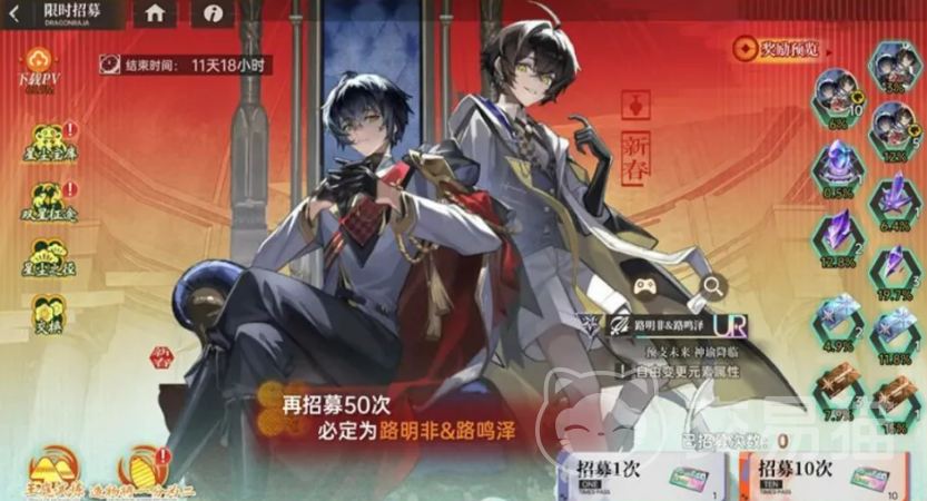 全新UR品质伙伴路明非与路鸣泽同步实装,采用双角色绑定机制。玩家可通过UR招募卷参与召唤,保底规则明确:累计召唤50次必得该双生组合。该机制取消模糊概率区间,显著降低抽取不确定性,兼顾零氪、微氪及中度投入玩家的资源规划预期。