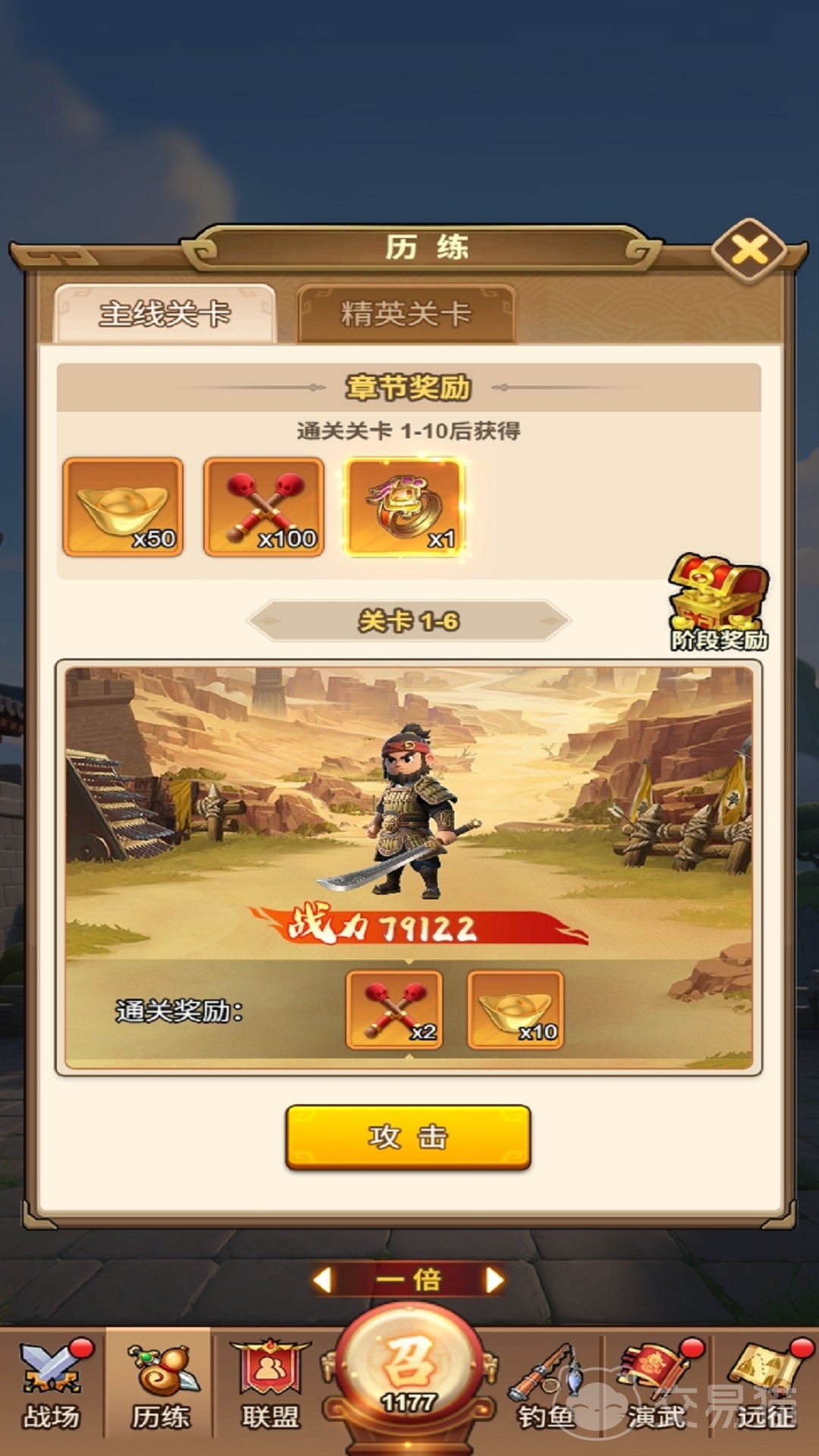 游戏任务体系划分为主线与精英双轨模式:主线关卡侧重基础成长资源积累,如元宝与通用装备;精英关卡则聚焦高稀有度产出,包括限定品质装备与武将皮肤。玩家可通过持续挑战强化角色数值,战斗力提升直接反映在武将实战表现中。