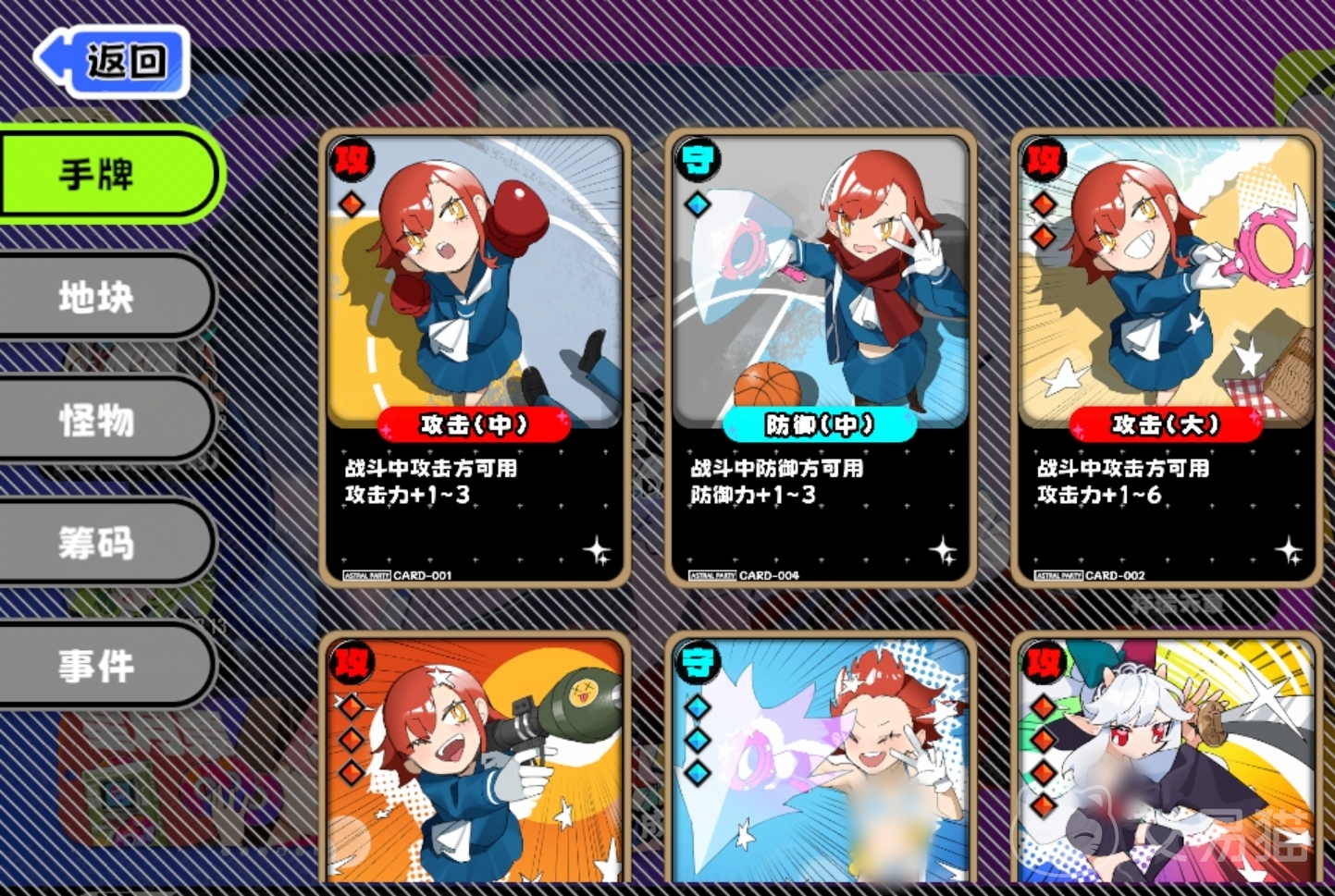 游戏采用回合制行棋结构,整体节奏类似经典大富翁玩法。玩家通过掷骰决定移动步数,触发事件格、遭遇敌人或进入防守区域时,同样依赖骰点结果判定战斗成败。每回合起始阶段,可消耗手牌发动增益效果或干扰对手;在PVE模式中,还可收集并组合“战斗筹码”,叠加多重战术加成。卡牌与战斗筹码均可通过商店购买、任务奖励等途径获取,图鉴系统完整收录全部道具说明,便于随时查阅效果与合成规则。