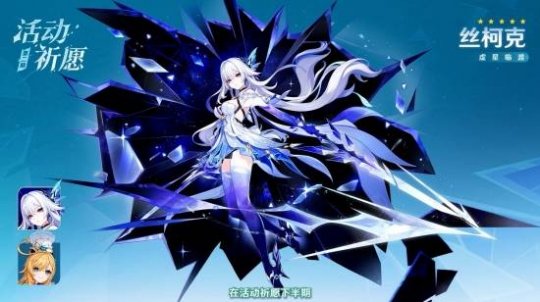 在版本第二期角色活动祈愿中,角色活动祈愿「虚星临渡」将会开启,限定五星角色「虚渊暗星 · 丝柯克(冰)」将迎来概率UP,而限定五星角色「明绚千韵 · 爱可菲(冰)」则在角色活动祈愿-2「莓色香颂」中迎来返场。