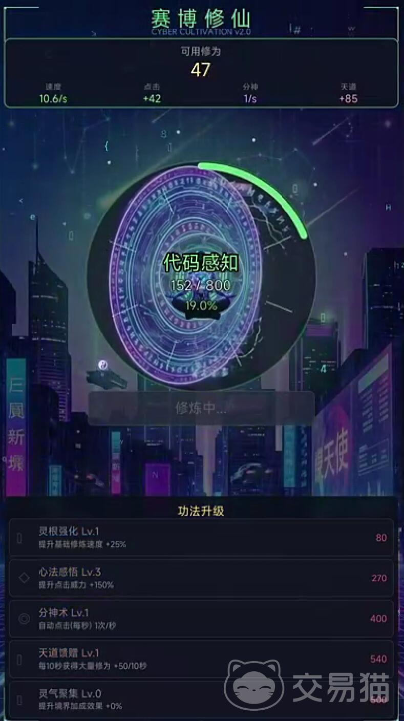 《赛博修仙:霓虹觉醒》是一款融合赛博朋克美学与东方修仙体系的创新型放置类手游。它跳脱出传统修仙题材的叙事框架,以“数据灵根”“量子能量”“共鸣芯”等原创设定重构修仙逻辑,打造兼具科技感与修真哲思的沉浸式体验。